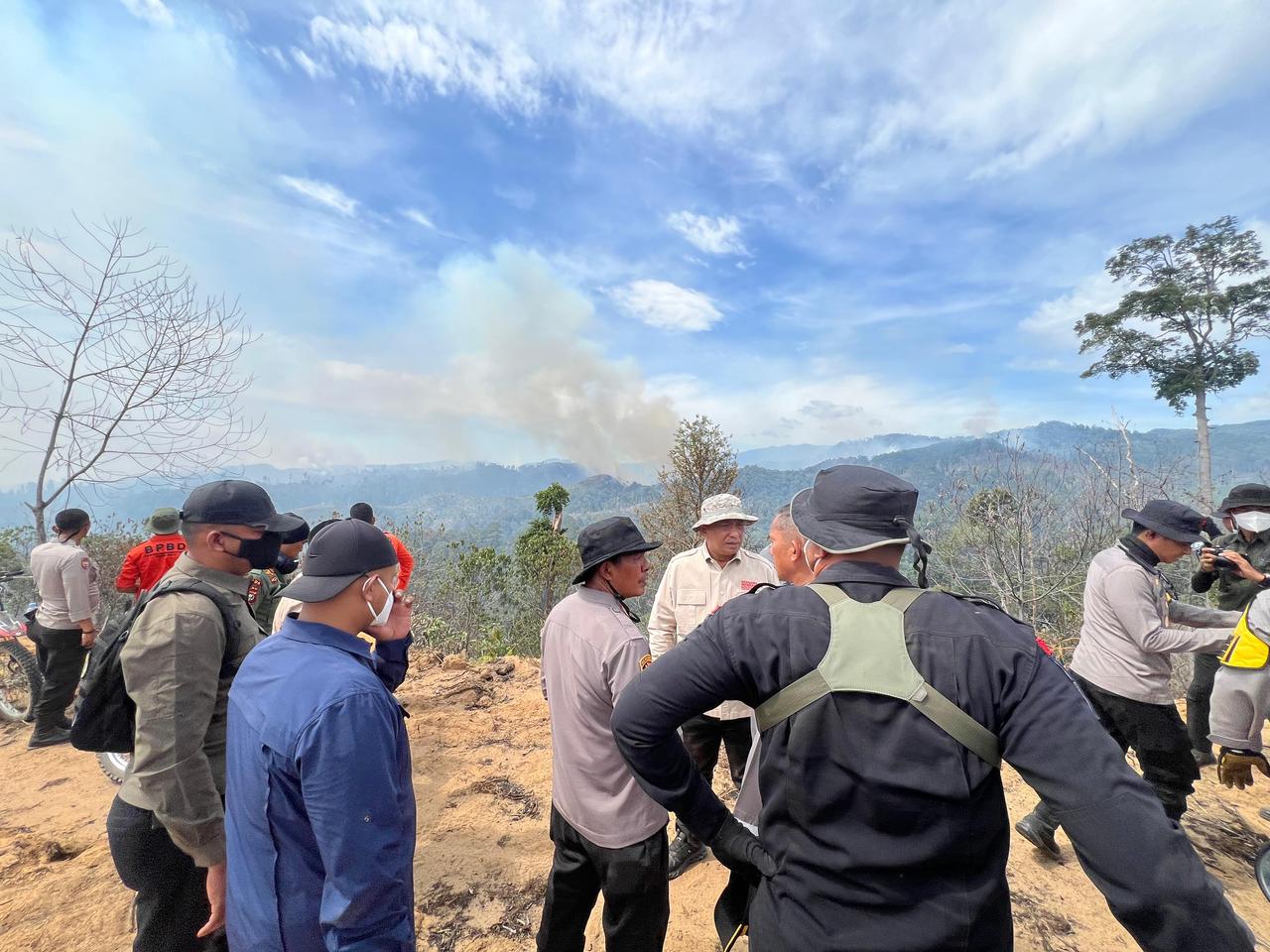 Terpantau, Wakapolda memimpin langsung pemadaman api kebakaran hutan dan lahan di wilayah perbukitan Desa menaming Kecamatan Rambah Kabupaten Rokan hulu.