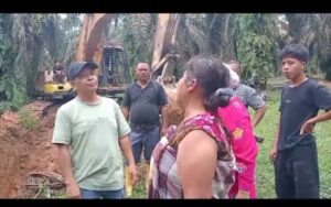 Disa’at pembuatan Parit tersebut , pekerja yang di kawal oleh Kades didatangi emak-emak yang bermukim di sekitar area tersebut, dan meminta agar Kades menghentikan penggalian parit gajah tersebut,