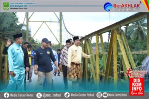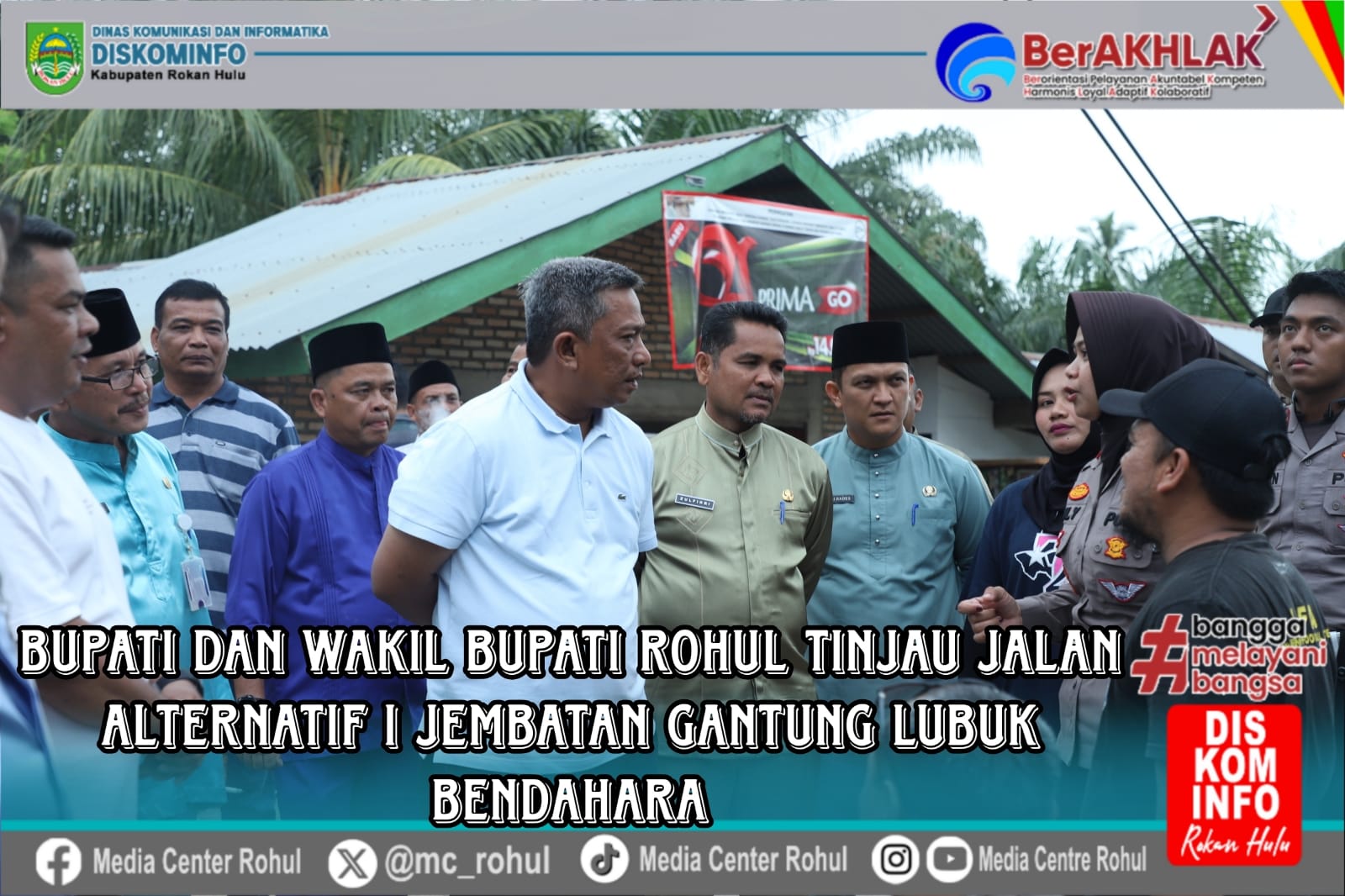 Media Center Rohul – Bupati Rohul Anton, S.T MM dan Wakil Bupati Rohul H. Syafaruddin Poti, S.H, MM tinjau jalan alternatif I yang disiapkan selama perbaikan Jembatan Utama Sei-Rokan, Lubuk Bendahara Kecamatan Ujung Batu, Jum’at (02/05/2025).