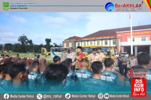 Media Center Rohul – Wakil Bupati Rokan Hulu (Rohul) H. Syafaruddin Poti, S.H., M.M., memimpin apel pelepasan peserta Jambore Kebakaran Hutan dan Lahan (Karhutla) Kabupaten Rohul pada Kamis pagi, 24 April 2025, di Lapangan Apel Mako Polres Rohul.