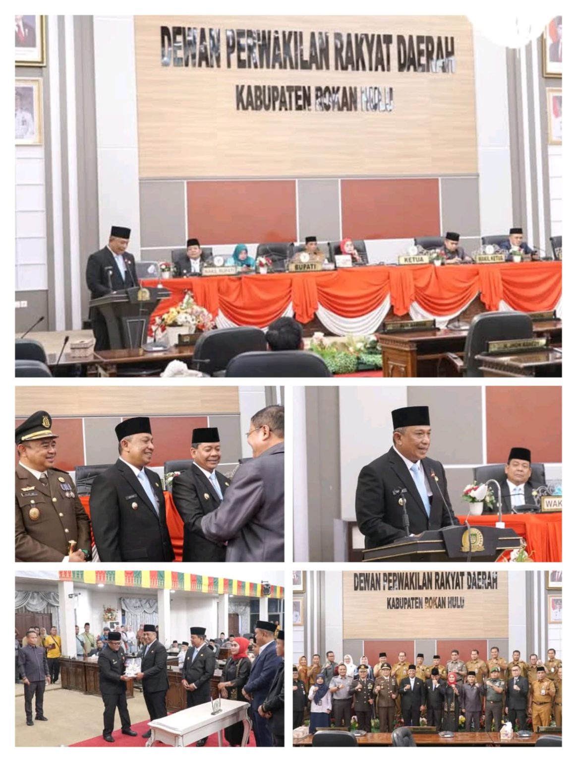 Rokan Hulu – Dewan Perwakilan Rakyat Daerah (DPRD) Kabupaten Rokan Hulu (Rohul), Provinsi Riau, menggelar Rapat Paripurna dengan agenda serah terima jabatan (sertijab) serta mendengarkan pidato perdana Bupati Rokan Hulu, Anton ST, MM, untuk periode 2025-2030. Acara ini berlangsung di Ruang Rapat Paripurna DPRD Rohul pada Senin (3/3/2025).