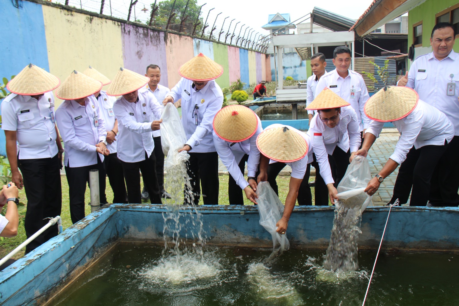 “Alhamdulillah, hari ini kita bersama-sama melakukan penaburan bibit ikan patin di Lapas Kelas IIA Pekanbaru. Tentunya ini merupakan tahap awal program pembinaan bagi Warga Binaan Pemasyarakatan (WBP) dan merupakan bentuk kehadiran pemasyarakatan dalam mendukung ketahanan pangan.” Ia juga menambahkan bahwa hasil panen ikan patin ini, selain dijual, akan dinikmati oleh WBP maupun masyarakat sekitar, sebagai bagian dari program peningkatan kesejahteraan.