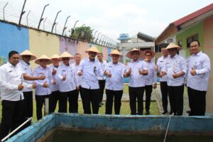 INFO_PAS|PEKANBARU| Dalam rangka mendukung program ketahanan pangan yang digalakkan oleh pemerintah, Kepala Kantor Wilayah Direktorat Jenderal Pemasyarakatan (Kakanwil Ditjenpas) Riau, Maizar, secara simbolis menaburkan bibit ikan patin di Lapas Kelas IIA Pekanbaru. Penaburan bibit ikan patin ini merupakan langkah awal dari program pembinaan di sektor perikanan yang direncanakan untuk terus berkembang di lapas tersebut, Rabu(19/02/2025).