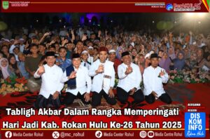 Suasana religius terasa begitu kental. Lantunan selawat menggema bersahut-sahutan, menambah kekhidmatan malam penuh berkah itu. Kegiatan Tabligh Akbar ini menjadi bagian dari rangkaian perayaan HUT Rohul sesuai dengan Slogan kepemimpinannya “Bersama Membangun Negeri”, sebuah cerminan kebersamaan dan rasa syukur atas perjalanan panjang kabupaten yang berjuluk Negeri Seribu Suluk tersebut.