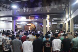 Pasir Pangarayan – Bertempat di Masjid At-Taubah Lembaga Pemasyarakatan (Lapas) Kelas II B Pasir Pangarayan, ratusan warga binaan melaksanakan ibadah Sholat Isya berjamaah dilanjutkan dengan ceramah agama dan Sholat Tarawih berjamaah dalam menyambut permulaan bulan suci ramadhan 1446 H. Pada malam pertama, Jum’at (28/02/2025) memasuki Bulan Ramadhan ini, Warga Binaan yang beragama Islam di Lapas Kelas IIB Pasir Pangarayan selama satu bulan mendatang akan menjalankan ibadah puasa. Setiap malam Ramadan akan diisi dengan sholat Tarawih berjamaah dan Tadarus Al – Quran.