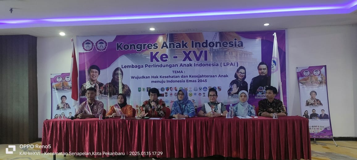 Kongres Anak Indonesia XVI di Pekanbaru ini menegaskan kembali komitmen semua pihak untuk memastikan anak-anak Indonesia tumbuh sehat, sejahtera, dan bahagia demi menyongsong Indonesia Emas 2045.