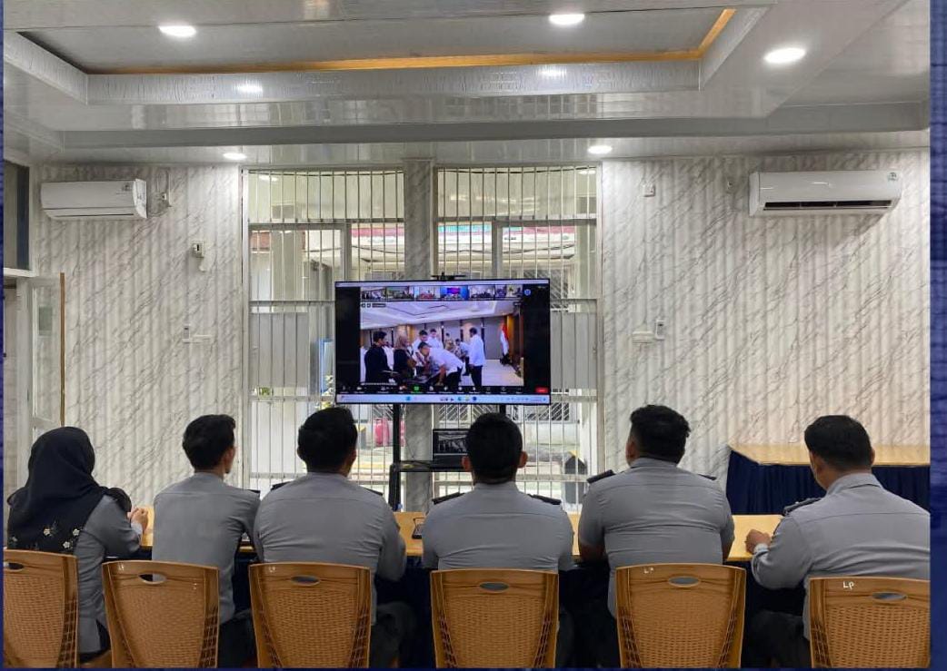Pasir Pengaraian – Lembaga Pemasyarakatan (Lapas) Kelas IIB Pasir Pangarayan mengikuti kegiatan Zoom Meeting Penandatanganan Naskah Kerja Sama antara Direktorat Jenderal Pemasyarakatan (Ditjenpas) dengan sembilan mitra strategis pada Selasa (1/7/2025). Kegiatan ini berlangsung di Aula Lapas Pasir Pangarayan dan dihadiri oleh Kasubag Tata Usaha, Suharno, Kepala Seksi Adm Kamtib Moch Subhan Zakaria dan Pejabat Esselon V.