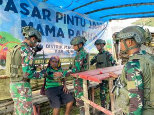 Dimatahati.Com – Dengan semangat pantang menyerah, warga Kampung Wunggi Distrik Mage’abume Papua Tengah menembus medan berat untuk membawa hasil pertanian mereka ke Pos Pintu Jawa, Satgas Yonif 700/Wira Yudha Cakti. Tak sekadar berniaga, para pejuang dari tanah Papua ini juga mendapat bantuan pengobatan dari prajurit TNI yang setia mendampingi rakyat. (03/05)