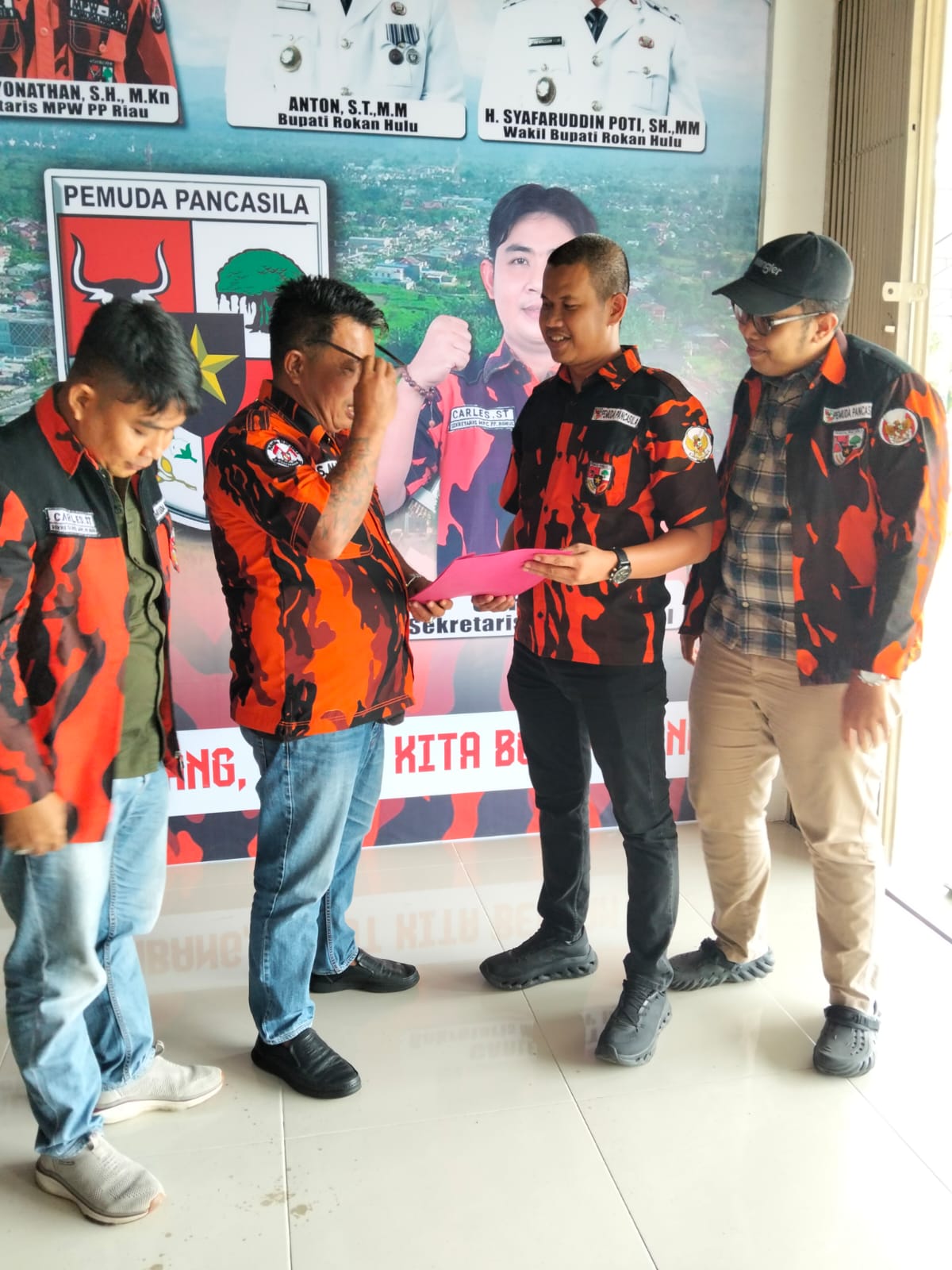 Rokan Hulu. Ketua Majelis pimpinan cabang pemuda pancasila kabupaten rokan hulu syahmadi malau di dampingi sekretaris carles ST dan ketua OKK Anton ade putra menyerahkan SK karateker PAC kecamatan tambusai kabupaten rokan hulu pada hari Rabu 7 Januari 2026