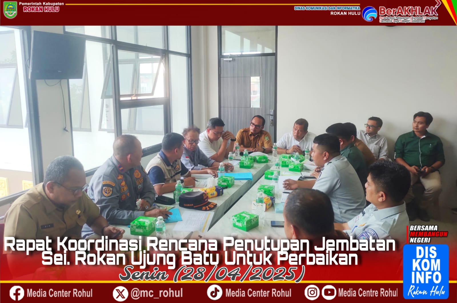 Media Center Rohul – Pemerintah Provinsi Riau melalui Kepala Dinas Perhubungan Provinsi Riau Andi Yanto, S.H. M.H lakukan Rapat Koordinasi (Rakor) rencana penutupan jembatan sungai Rokan dalam rangka perbaikan dan pemeliharaan jembatan. Ujung Batu, Senin (28/04/2025).