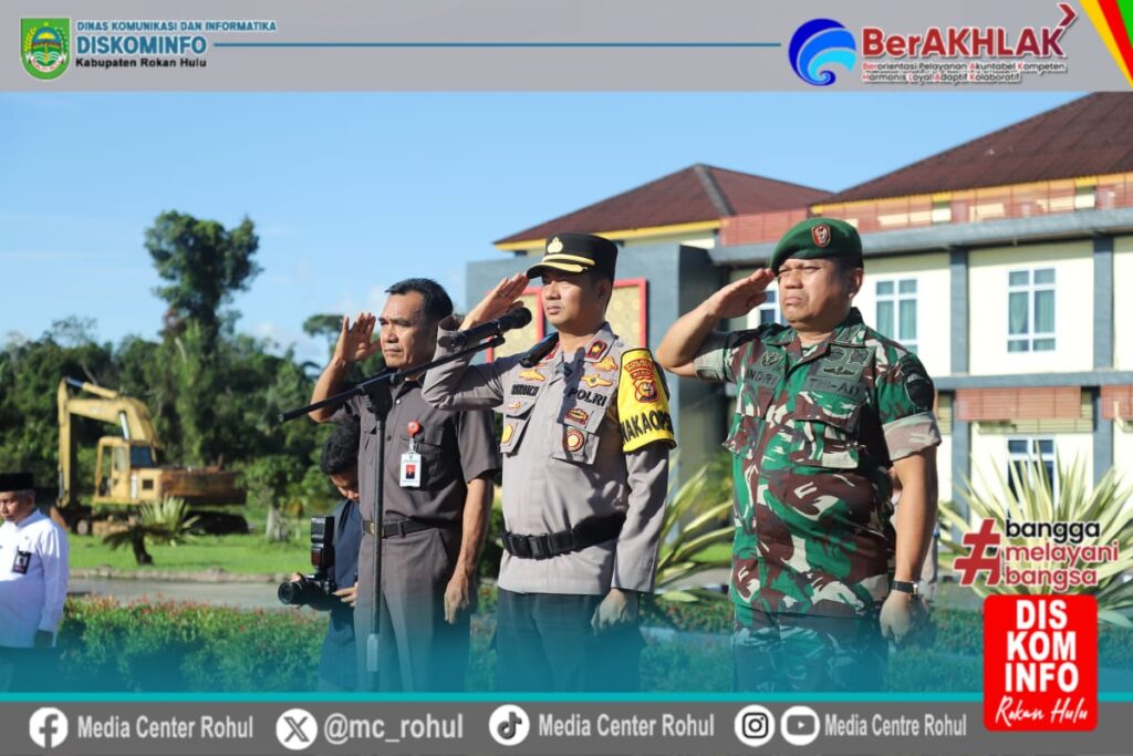 Apel ini juga dihadiri oleh sejumlah pejabat daerah, termasuk Asisten I Pemkab Rokan Hulu, Fhatanalia Putra, S.Sos., yang mewakili Bupati, serta para kepala instansi terkait, seperti Kabankesbangpol Suherman, M.Si., Pabung Mayor Inf Andre Suardi, S.Sos., dan Kepala BPBD Ridarmanto, S.IP.