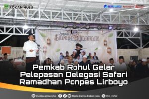 Rokan Hulu– Pemerintah Kabupaten Rokan Hulu (Rohul) menggelar jamuan makan siang sekaligus pelepasan delegasi Safari Ramadan Pondok Pesantren Lirboyo, bertempat di Pendopo Rumah Dinas Wakil Bupati, Senin (16/02/2026).Hadir dalam kegiatan Wakil Bupati Rohul H. Syafaruddin Poti, didampingi Asisten II Drs. H. Yusmar, M.Si, Kadis DPMPTSP H. Munandar, S.E., M.M, Kadis DPMPD Prasetyo, M.IP, Kadis Transnaker Suparno, S.Hut, M.M, Kabag Kesra Saprizal Ahmad, serta Kabid IKP Diskominfo Dr. Rudy Fadrial, S.Sos, M.Si.