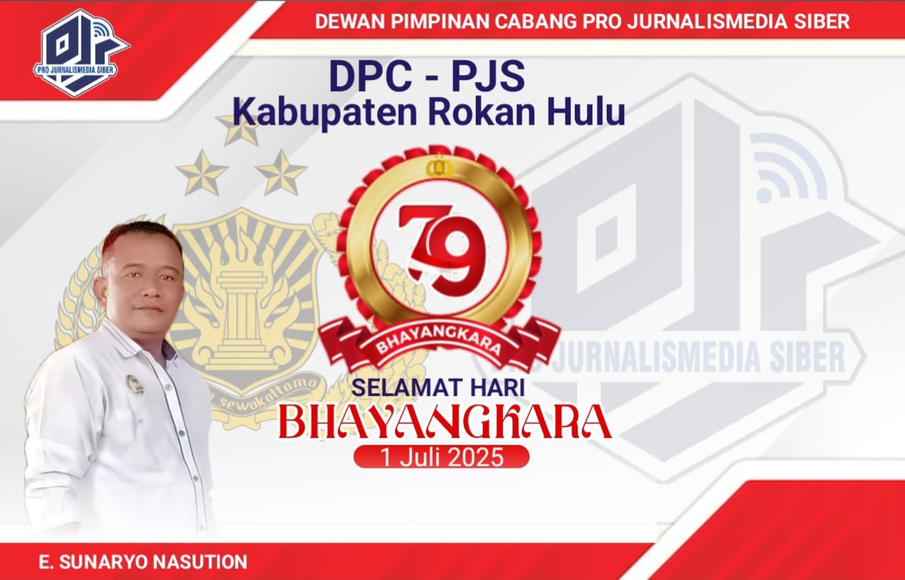 Tahun ini, Selasa (1/7/2025), peringatan Hari Bhayangkara memasuki usia ke-79. Ucapan selamat dan doa terbaik terus mengalir, tak hanya dari unsur pemerintah, tetapi juga dari organisasi masyarakat dan profesi, termasuk dari Dewan Pimpinan Cabang Pro Jurnalismedia Siber (DPC PJS) Kabupaten Rokan Hulu.