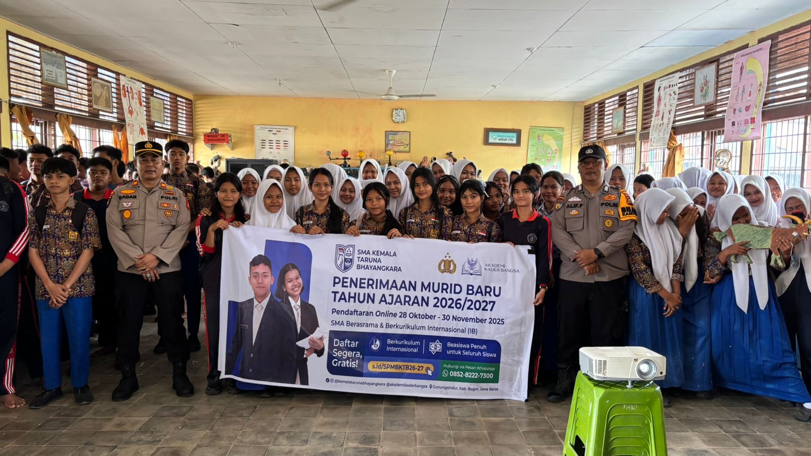 Kunto Darussalam | dimatahati.com – Kapolsek Kunto Darussalam, AKP Dadan Wardan Sulia, S.H., mendorong siswa SMPN 1 Kunto Darussalam untuk meraih masa depan gemilang dengan mengenalkan SMK Kemala Taruna Bhayangkara dalam kegiatan sosialisasi Penerimaan Peserta Didik Baru Tahun Ajaran 2026/2027, Selasa (18/11/2025) pagi. Sekitar 50 siswa kelas IX, didampingi guru dan jajaran kepolisian, antusias mengikuti acara yang berlangsung di lingkungan sekolah.