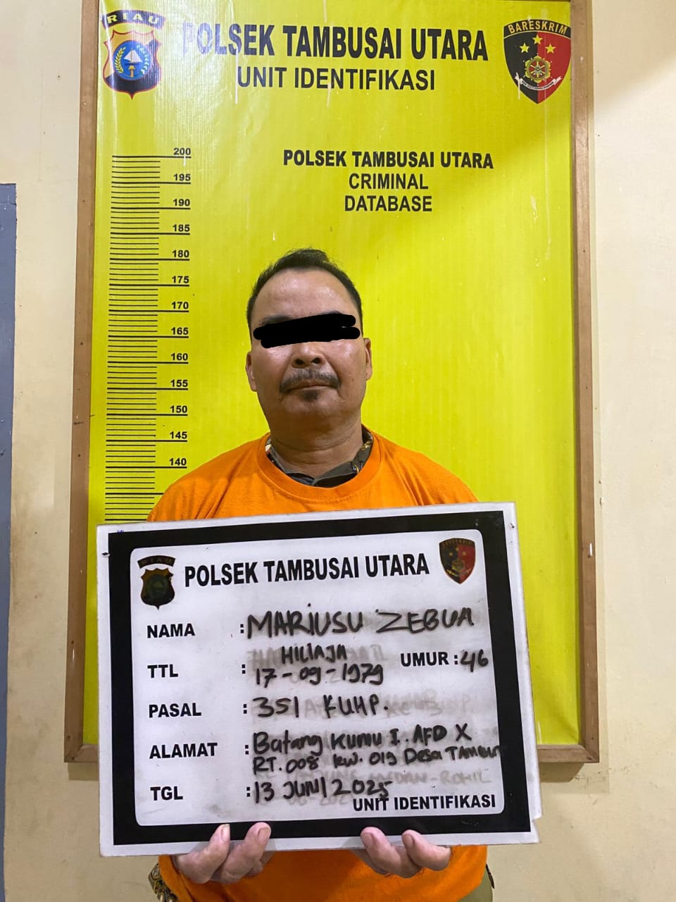 Rokan Hulu – Kapolsek Tambusai Utara tangkap pelaku penganiayaan inisial MZ di Afdeling X PT. Torganda, Batang Kumu I, Desa Tambusai Utara Kecamatan Tambusai Utara. Jumat, 13 Juni 2025 sekira pukul 14.00 WIB.