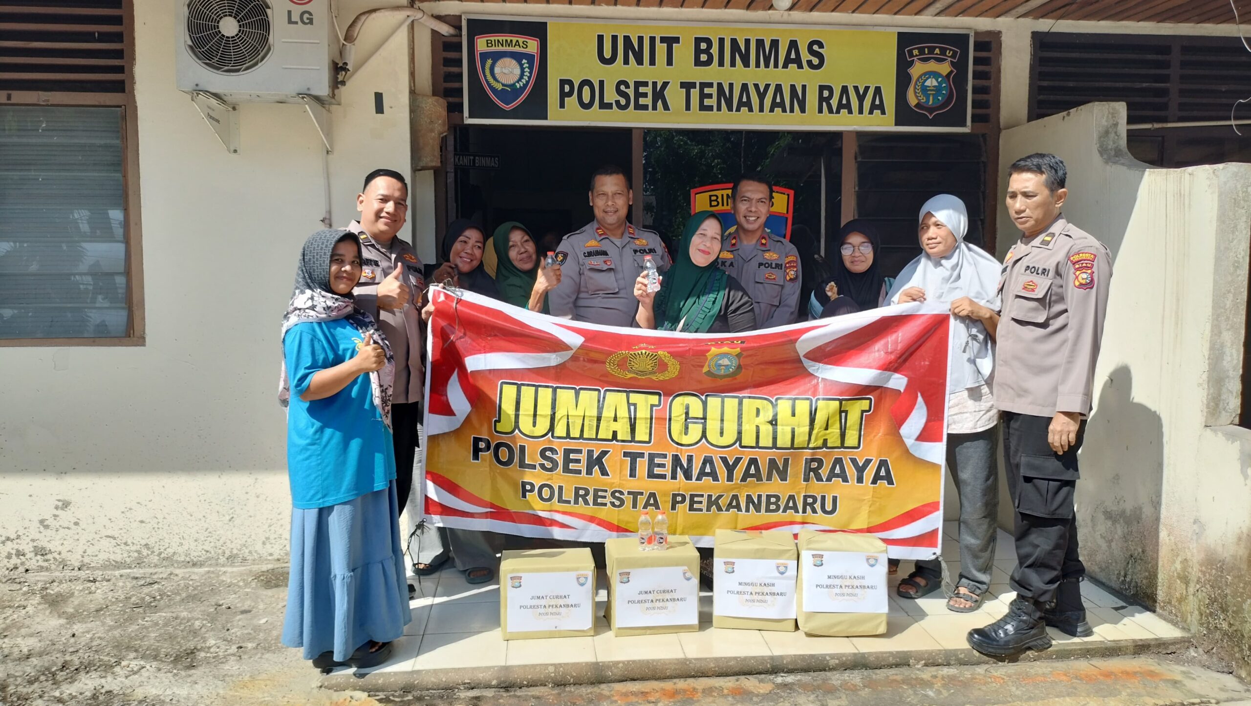 Hadir dalam kegiatan ini Kapolsek Tenayan Raya Kompol Oka Syahrial Mahendra, S.E., S.I.K., M.M., KA SPKT Iptu Crista, Kasi Keuangan Ipda Syafi’ie, Panit Binmas Ipda Hendriady, Bhabinkamtibmas Polsek Tenayan Raya, serta warga dari berbagai kelurahan di wilayah hukum Polsek Tenayan Raya.