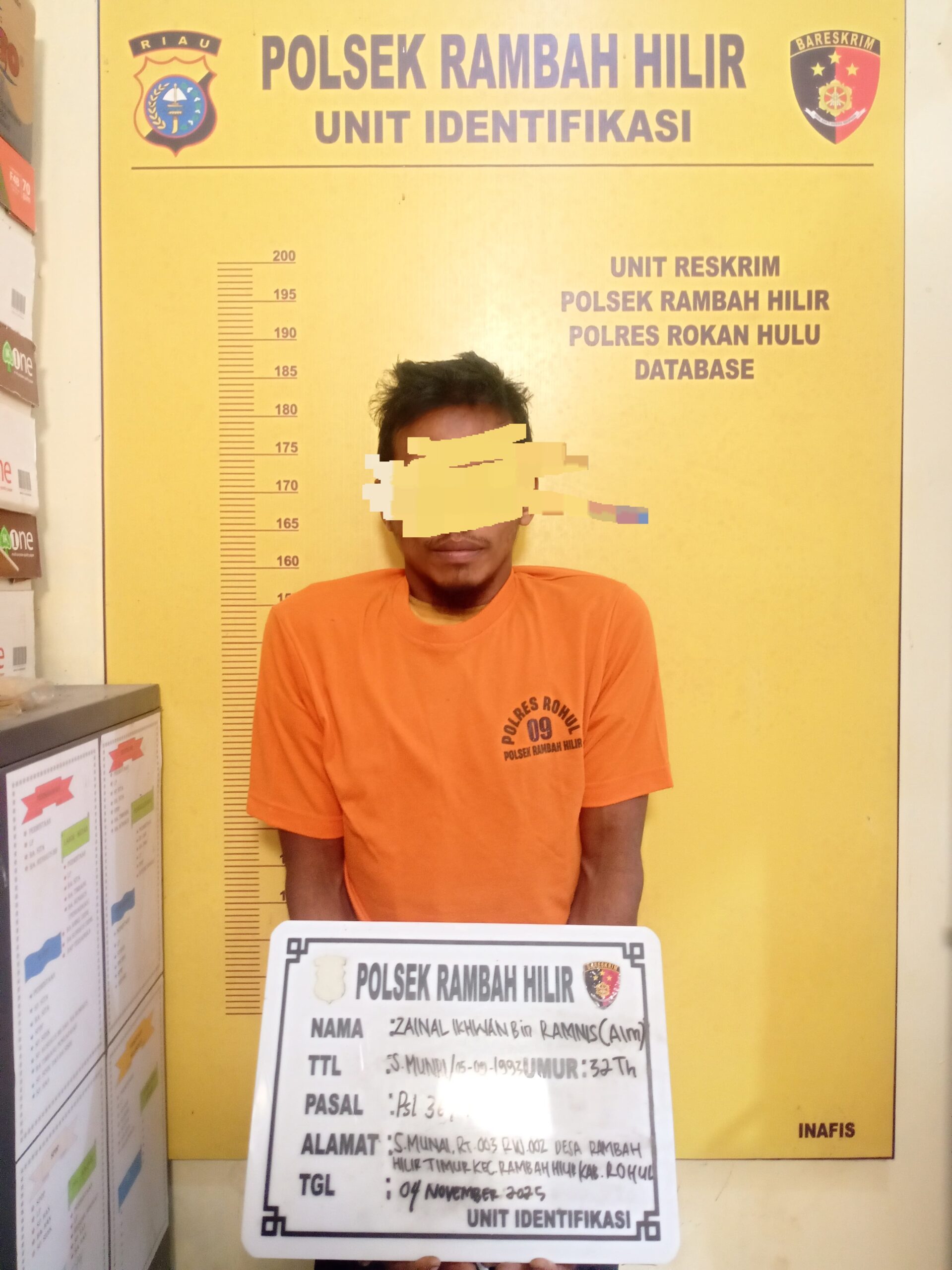 Kapolsek Rambah Hilir IPDA Okto Wahyudi, S.Fil., M.M. menjelaskan bahwa penangkapan bermula ketika Bhabinkamtibmas Bripka Andri Fahmi, S.H. melakukan patroli rutin pada pukul 18.00 WIB di Dusun Surau Munai. Saat patroli, petugas menemukan tumpukan sawit yang mencurigakan di pinggir jalan, dan tidak jauh dari lokasi itu, petugas mendapati seorang pria dengan gerak-gerik yang mencurigakan. Polisi langsung mengamankan pelaku berikut barang bukti.