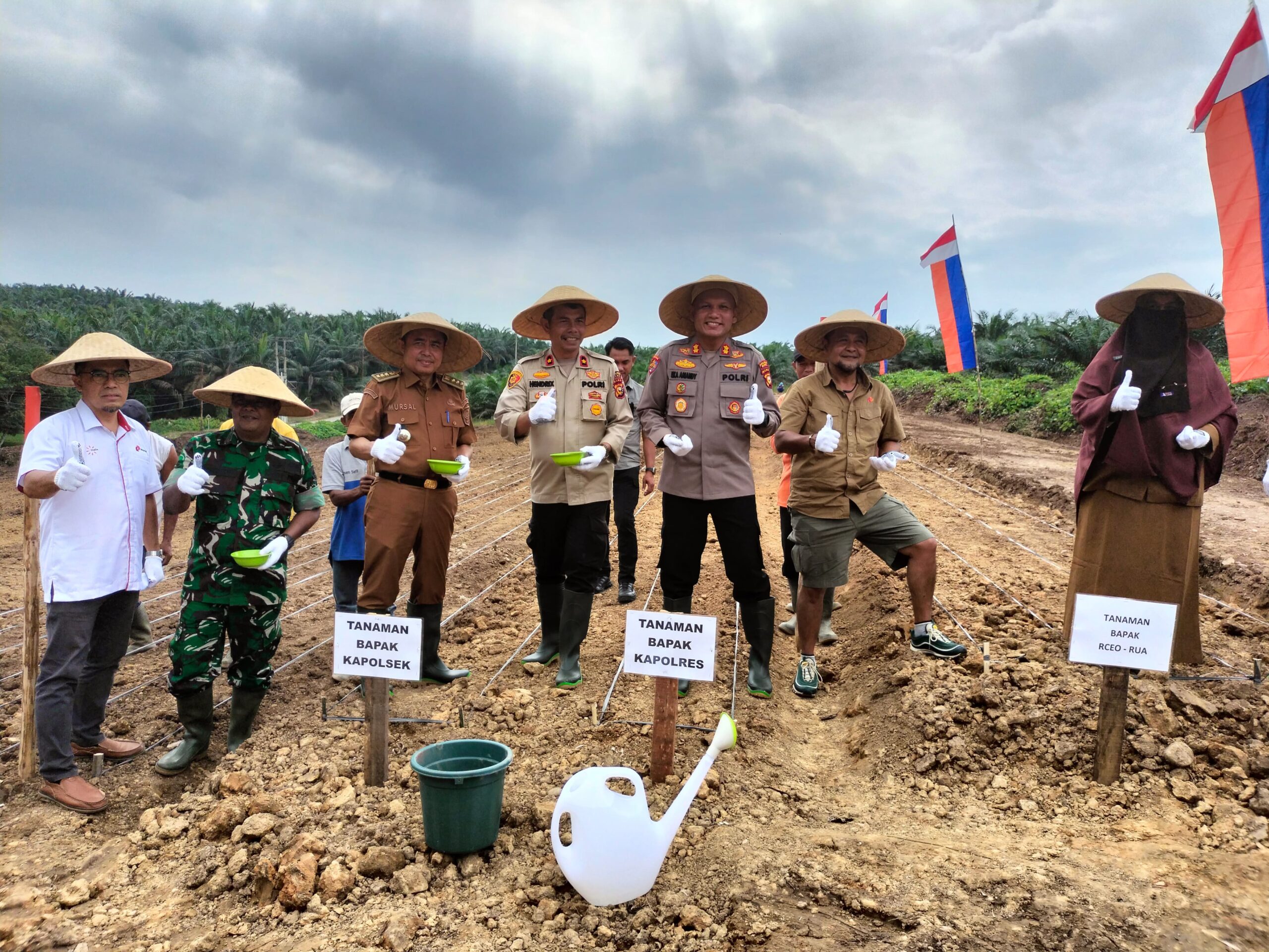 Perawang, Kapolres Siak AKBP Eka Ariandy Putra SH,S.I.K,M.SI pimpin pelaksanaan penanaman jagung bersama Upika Kecamatan, Dinas Pertanian, perangkat Kampung dan pimpinan PT.AIP di lahan seluas 5 hektar milik PT AIP ( Aneka Inti Persada ), di Kampung Tualang Timur Kecamatan Tualang Kabupaten Siak, Senin (10/2/25).