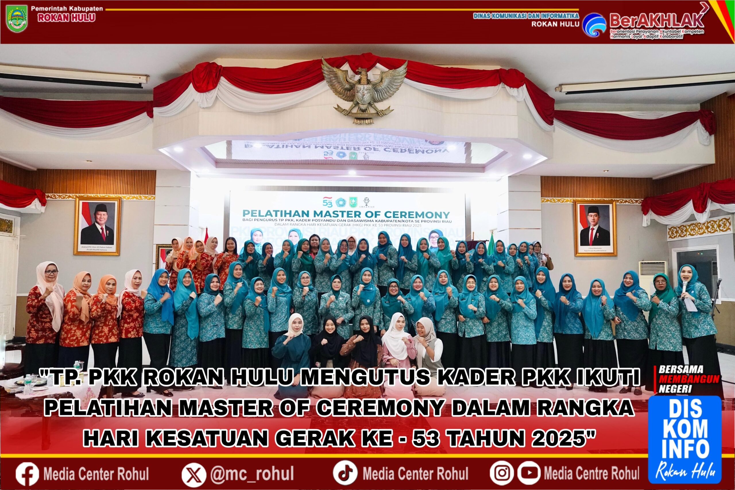 Pekanbaru | Media Center Rohul – Dalam rangka Hari Kesatuan Gerak (HKG) Tim Penggerak Pemberdayaan dan Kesejahteraan Keluarga (TP PKK) ke-53, TP PKK Provinsi Riau mengadakan pelatihan Master of Ceremony (MC) atau pembawa acara.