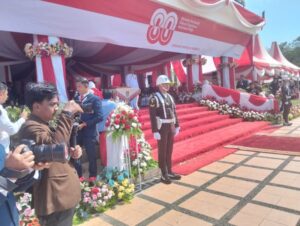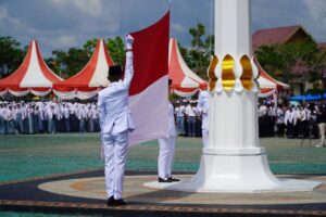 Rohul – Upacara penurunan bendera merah putih peringatan hari ulang tahun ke-80 kemerdekaan Republik Indonesia tahun 2025 dengan tema ” Bersatu Berdaulat Rakyat Sejahtera Indonesia Maju” berlangsung khidmat dipimpin Oleh Bupati Rokan Hulu Anton, ST, MM dari halaman kantor Bupati Rokan Hulu, Minggu (17/08/2025) Sore.