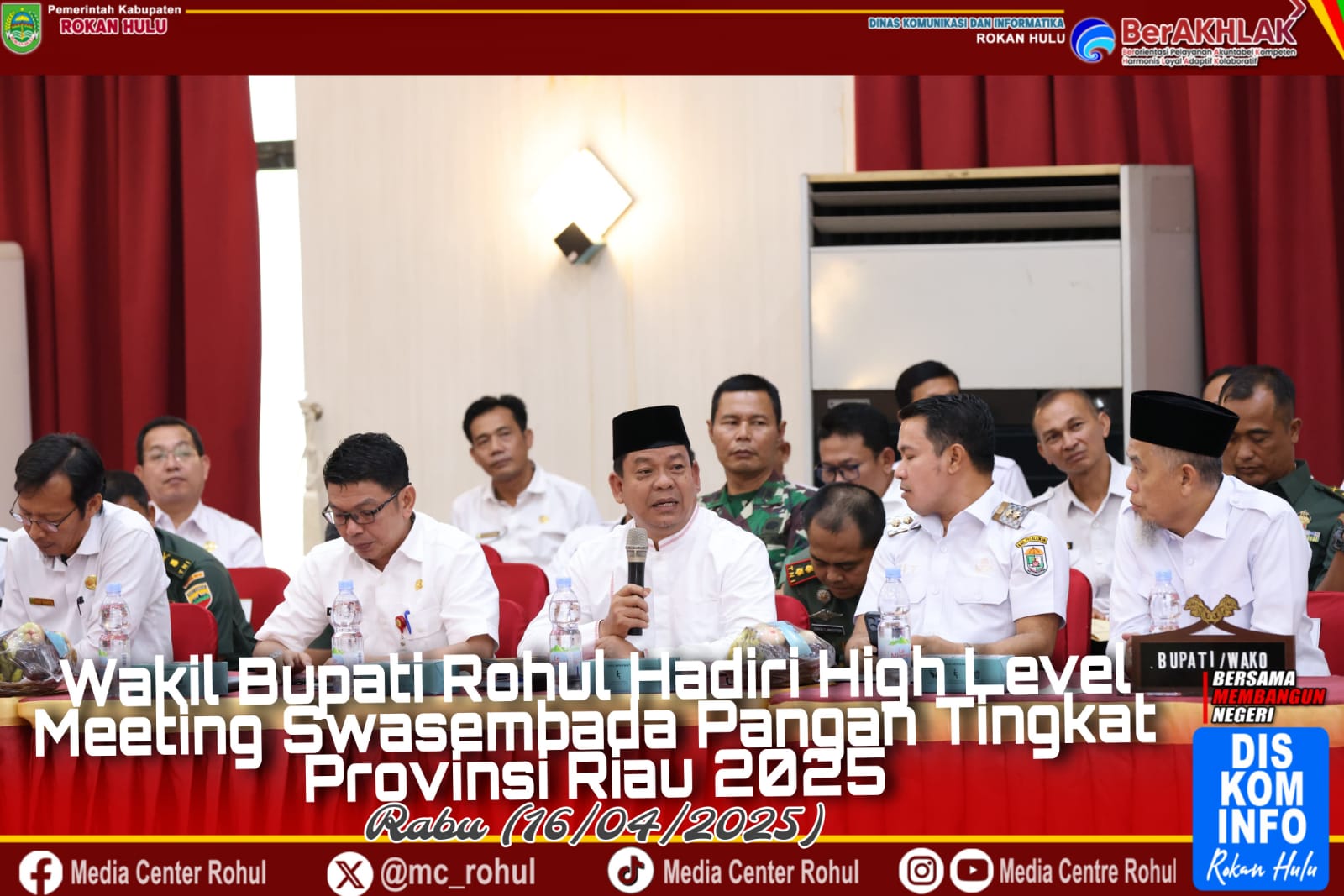 Pekanbaru | Media Center Rohul – Wakil Bupati Rokan Hulu H. Syafaruddin Poti, SH, MM hadiri High Level Meeting Swasembada Pangan Tingkat Provinsi Riau dan atas nama Pemerintah Kabupaten (Pemkab) Rohul menyatakan komitmennya serta dukung penuh terhadap program pemerintah menuju swasembada pangan nasional yang dicanangkan melalui asta cita Presiden Republik Indonesia, H. Prabowo subianto.