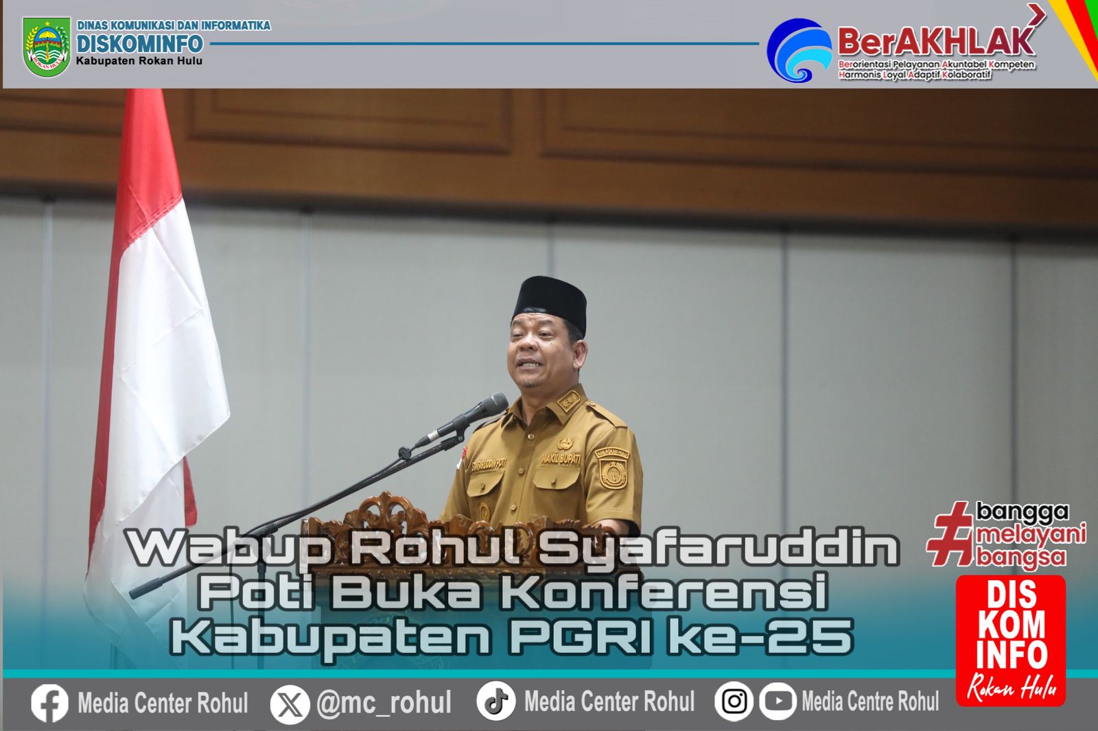 Dalam sambutannya, Wakil Bupati H. Syafaruddin Poti menyampaikan apresiasi atas peran PGRI dalam meningkatkan kualitas pendidikan di Kabupaten Rokan Hulu. Ia juga berharap konferensi ini dapat menjadi momentum untuk meningkatkan semangat dan komitmen para guru dalam menjalankan tugasnya.