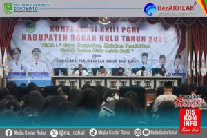 Media Center Rohul – Konferensi Kabupaten ke XXIII Persatuan Guru Republik Indonesia (PGRI) tahun 2025 yang dilaksanakan di hall Islamic Center Kabupaten Rokan Hulu dengan tema “Guru Kompeten Majukan Pendidikan untuk Rokan Hulu Lebih Baik” dan “Sosialisasi Perlindungan Hukum Bagi Guru” dibuka secara resmi oleh Wakil Bupati Rokan Hulu H. Syafaruddin Poti, SH, MM, Senin (05/05/2025).