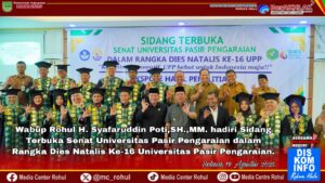 Rohul – Universitas Pasir Pengaraian (UPP) laksanakan Sidang Terbuka Senat UPP Dalam Rangka Dies Natalis Ke-16 Universitas Pasir Pengaraian, kegiatan dengan tema “Kontributif, Inovatif. UPP Hebat Untuk Indonesia Maju” yang juga dirangkaikan dengan Ekspose Hasil Penelitian.
