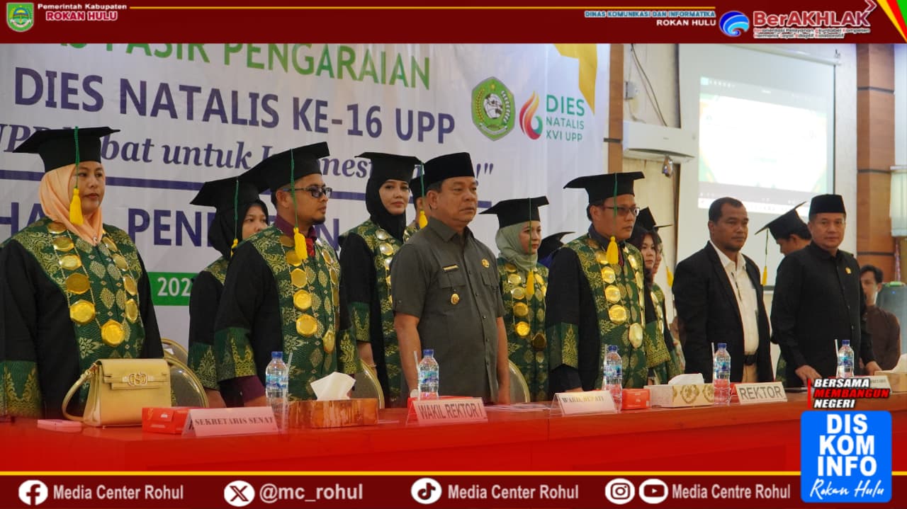 Wabup Syafaruddin Poti menyampaikan atas nama Pemkab Rohul mengucapkan selamat ulang tahun ke-16, karena diusia UPP ini telah melewati banyak tantangan dan hari ini berdiri tegak sebagai pilar pendidikan tinggi di Negeri Seribu Suluk.